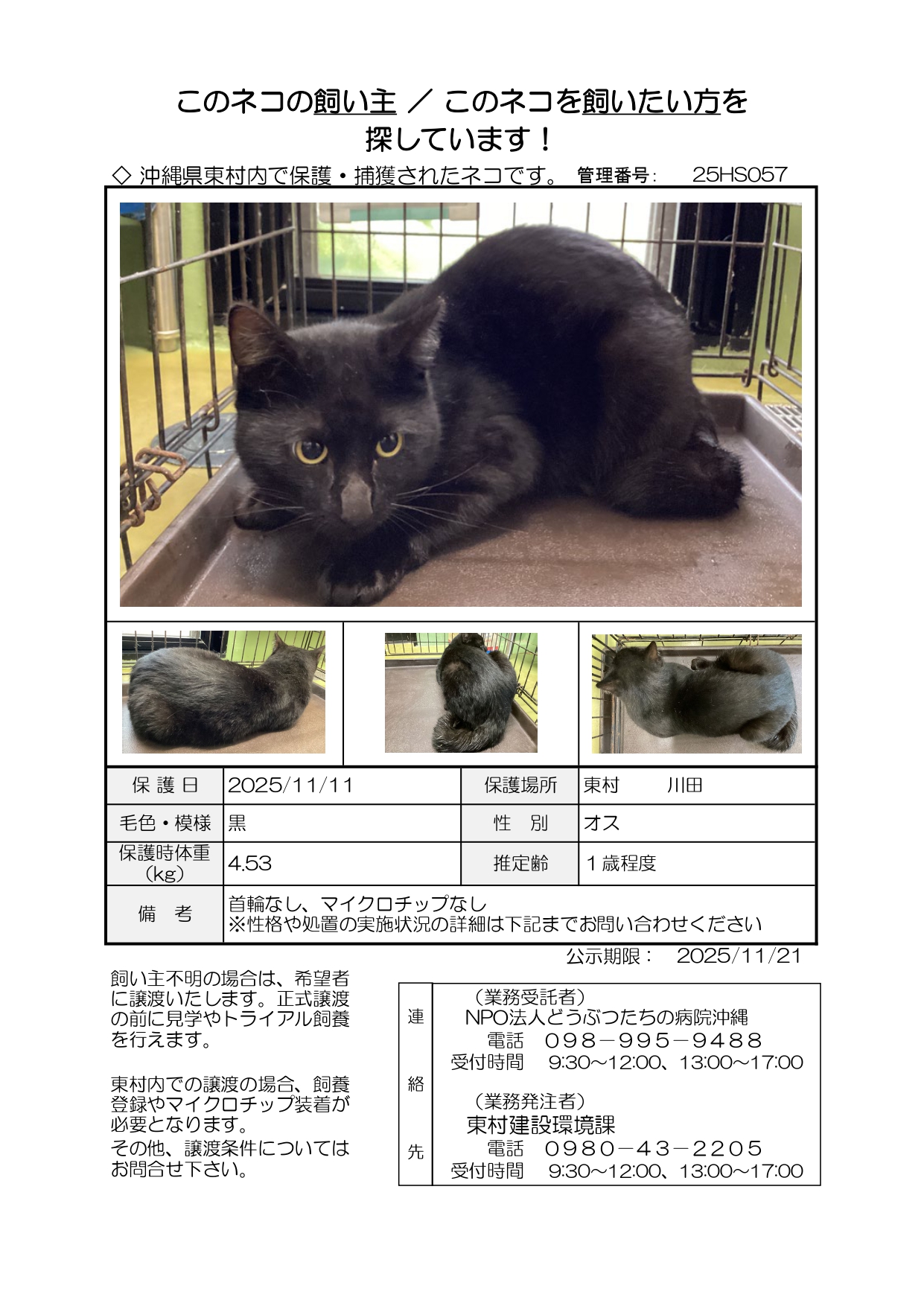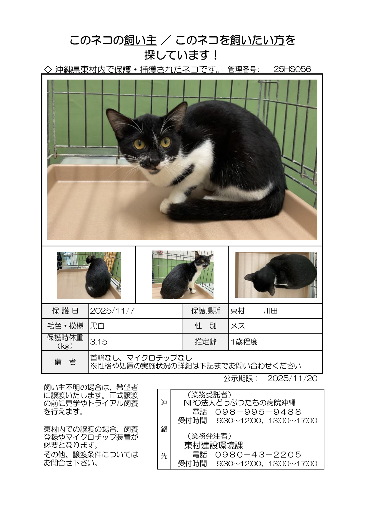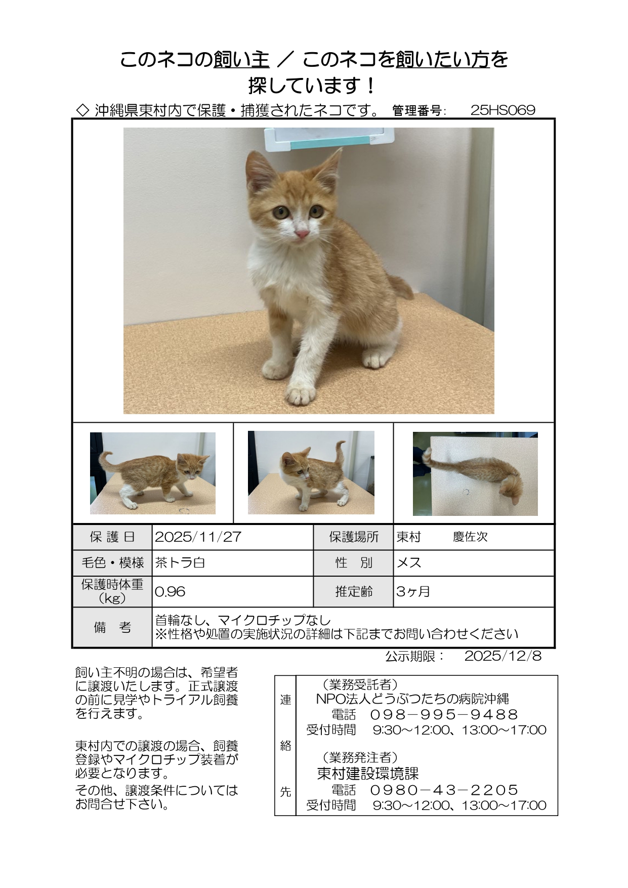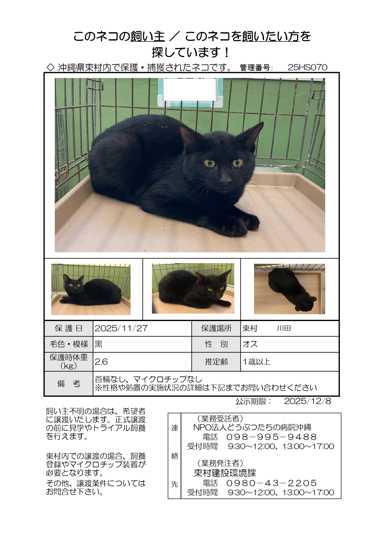 保護されたネコは、村条例で定めた保護期間(約10日間)のあとも、様々な方のお力を借りし、元気に暮らしています。