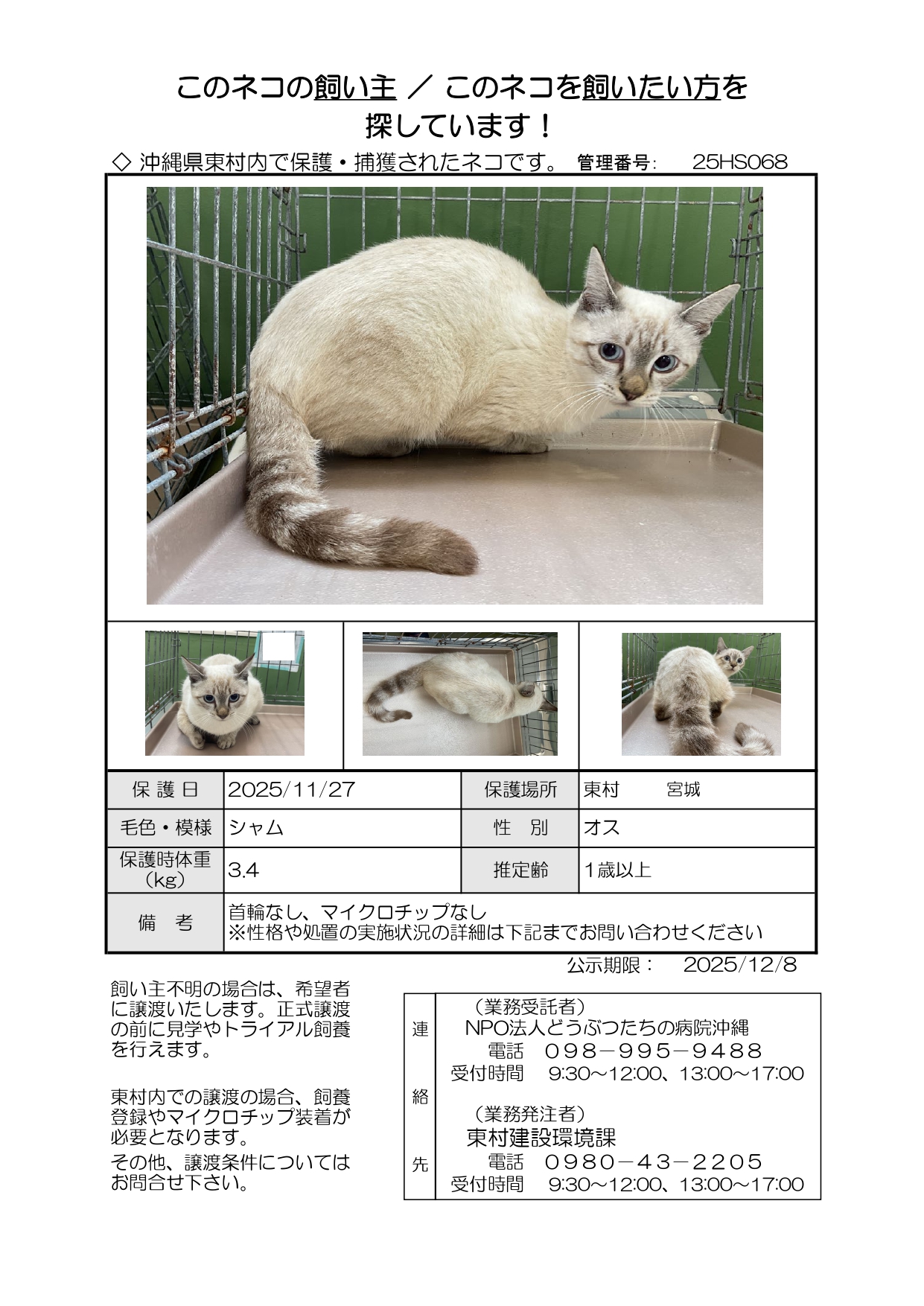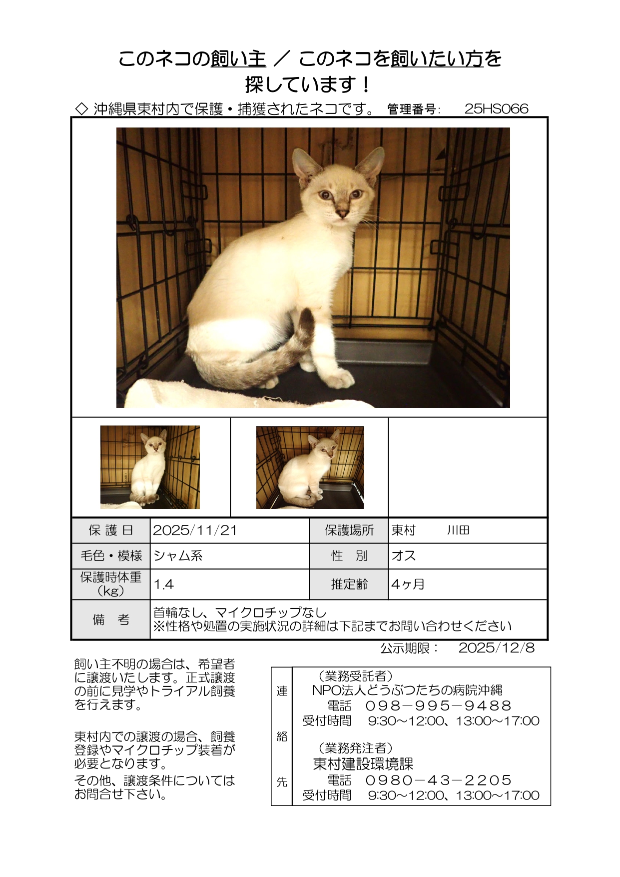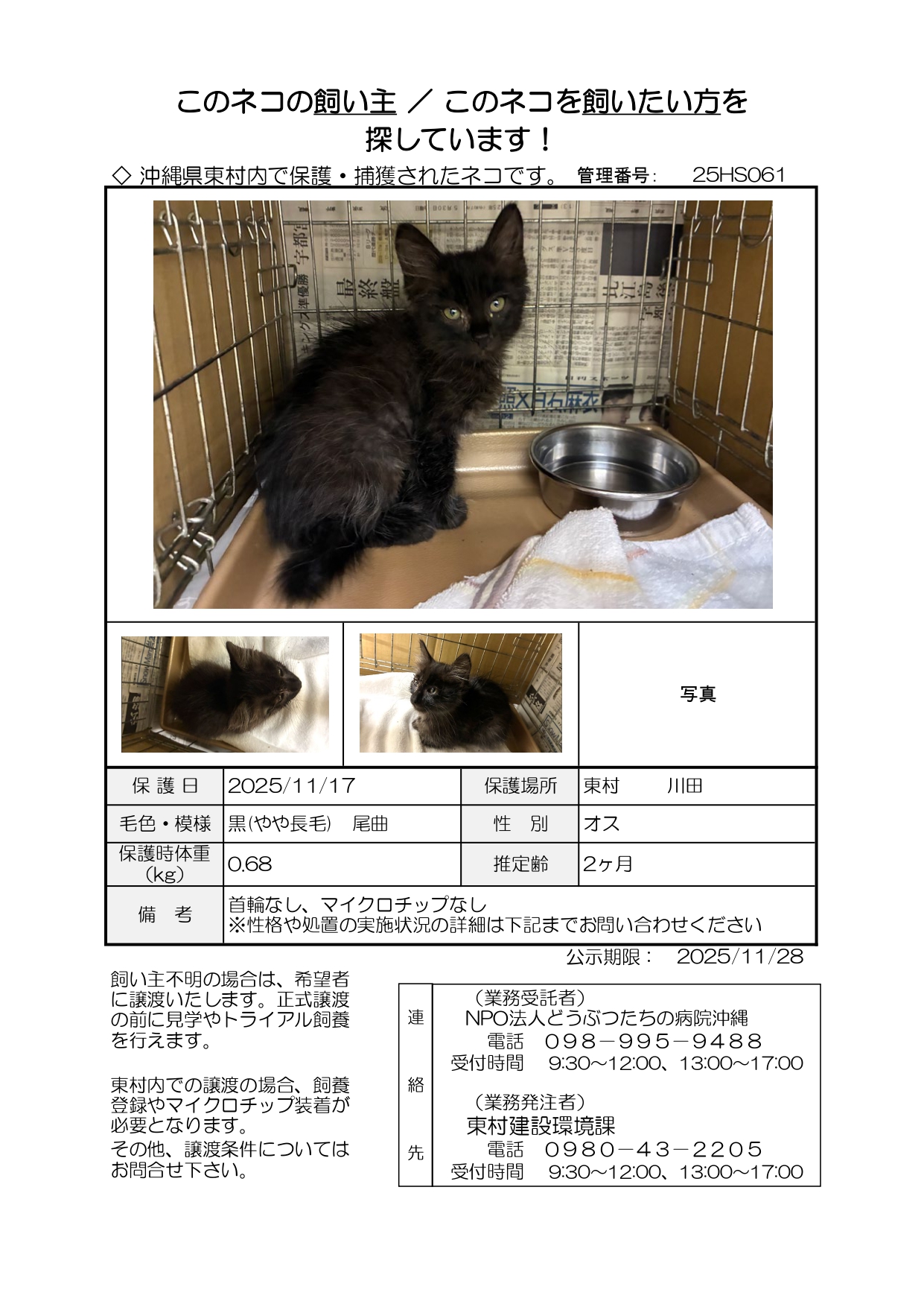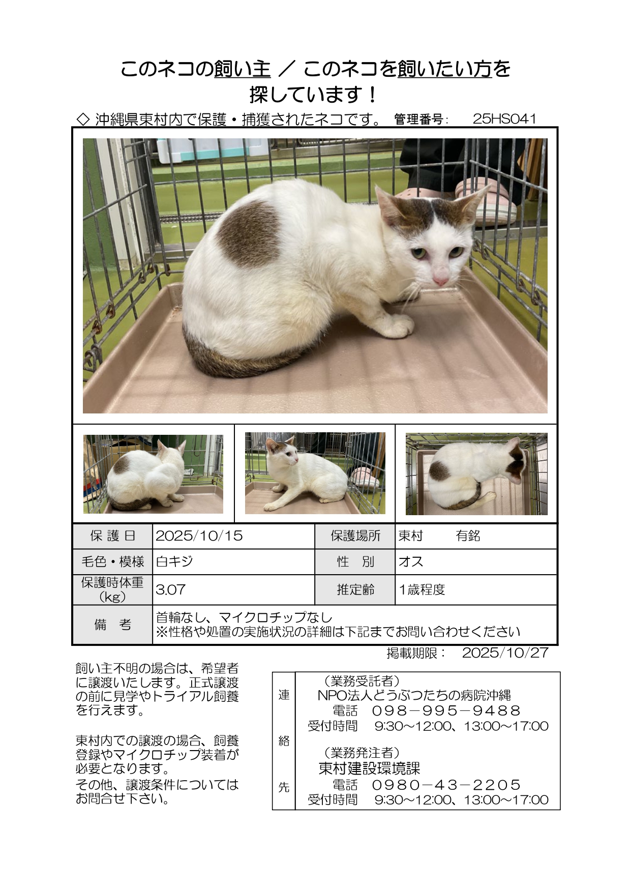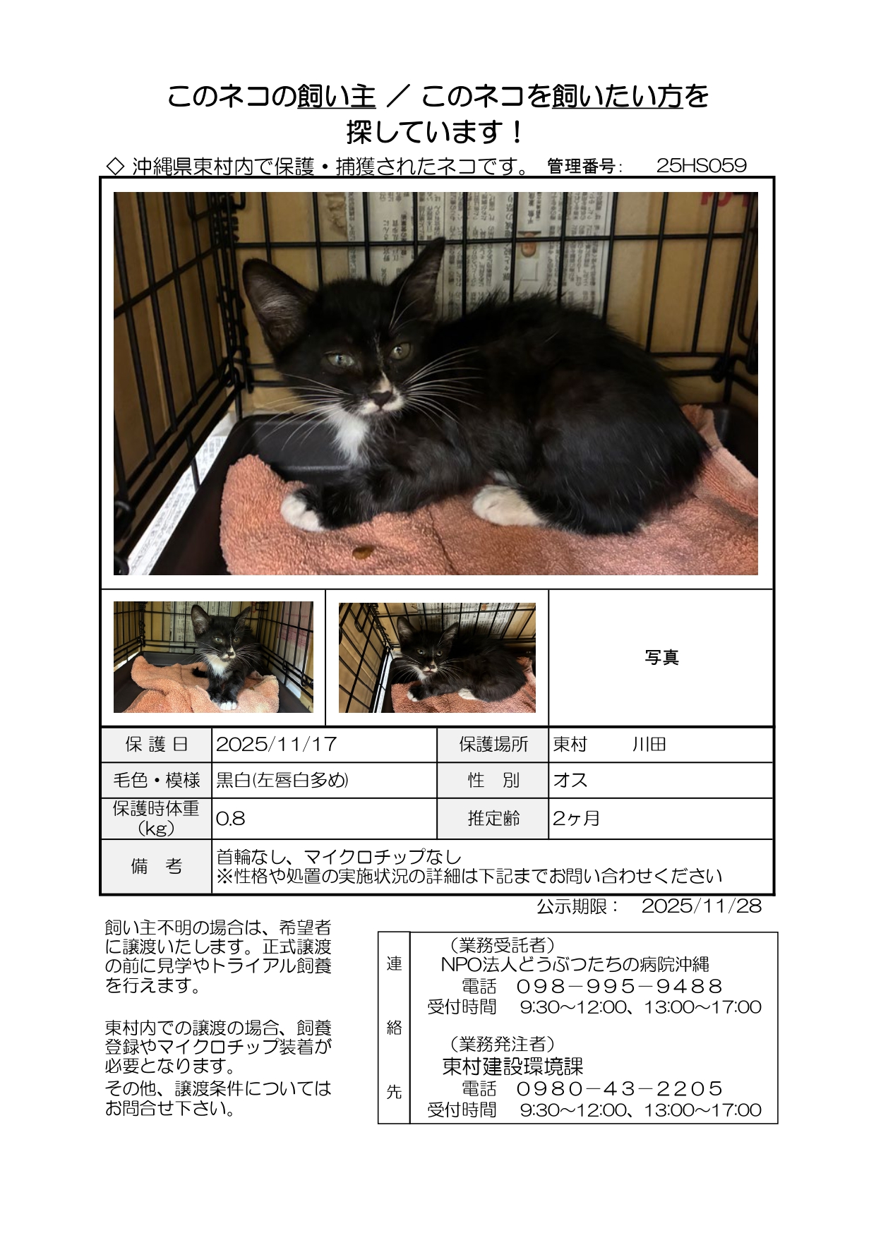 保護されたネコは、村条例で定めた保護期間(約10日間)のあとも、様々な方のお力を借りし、元気に暮らしています。