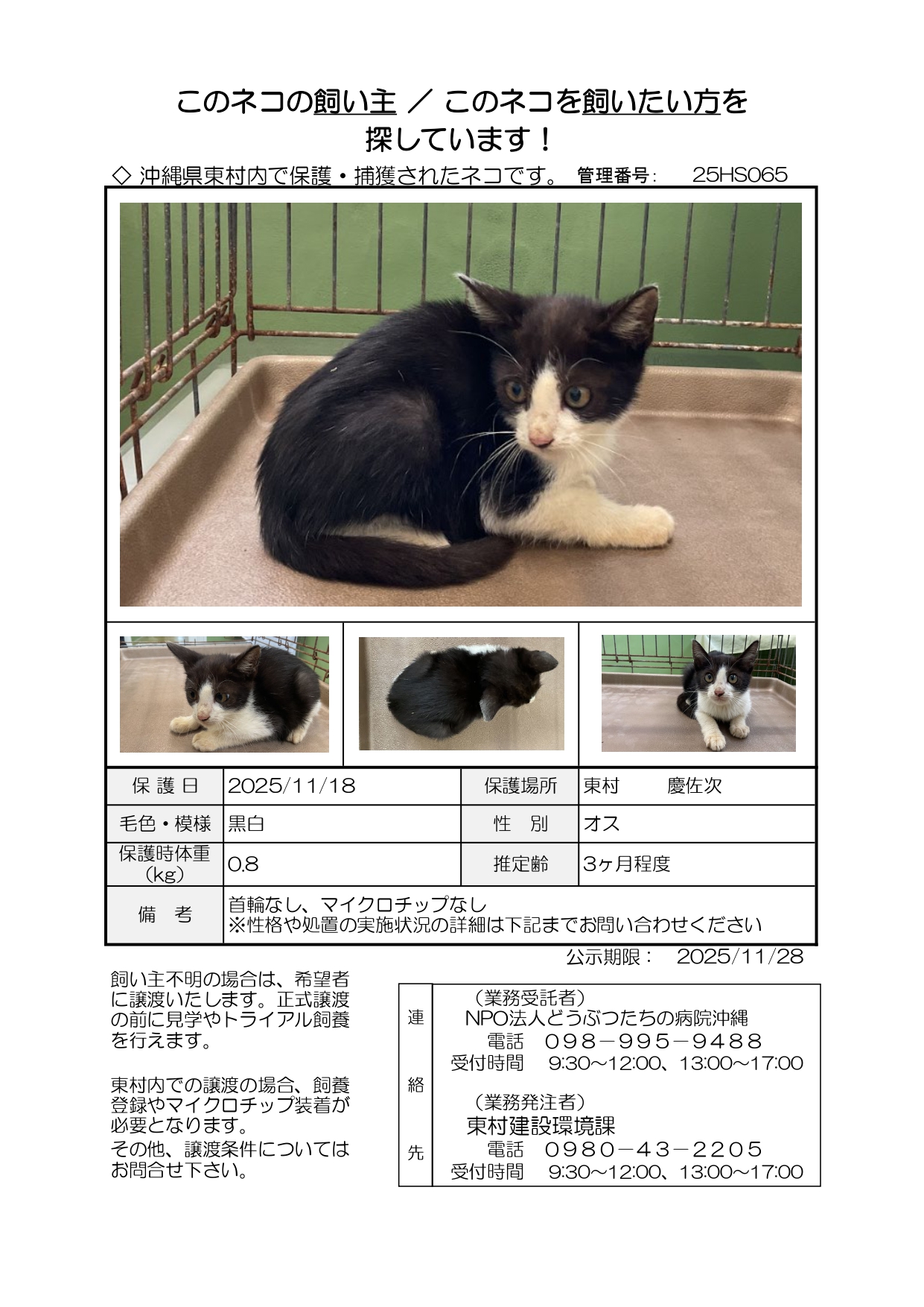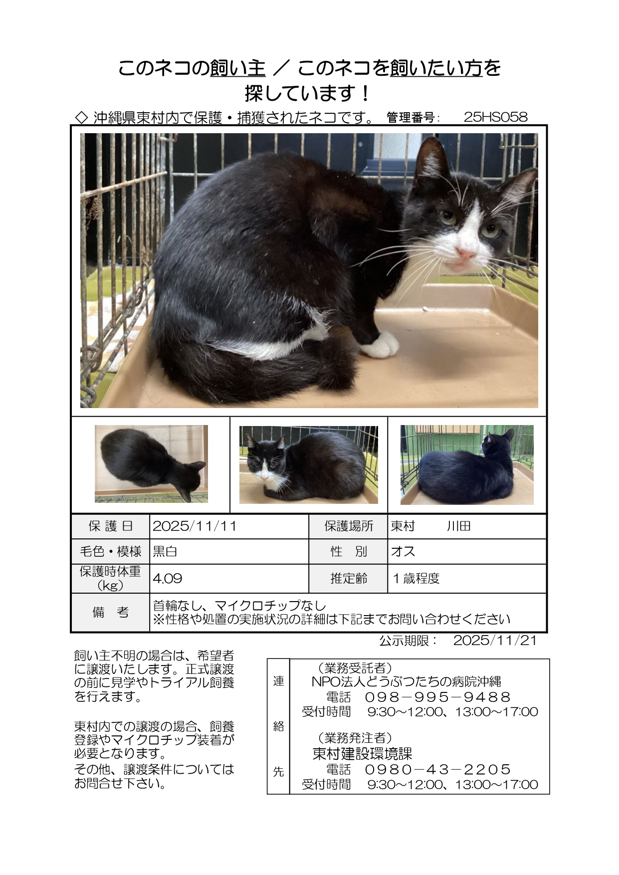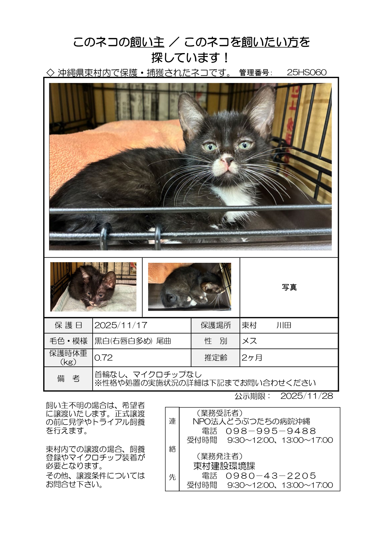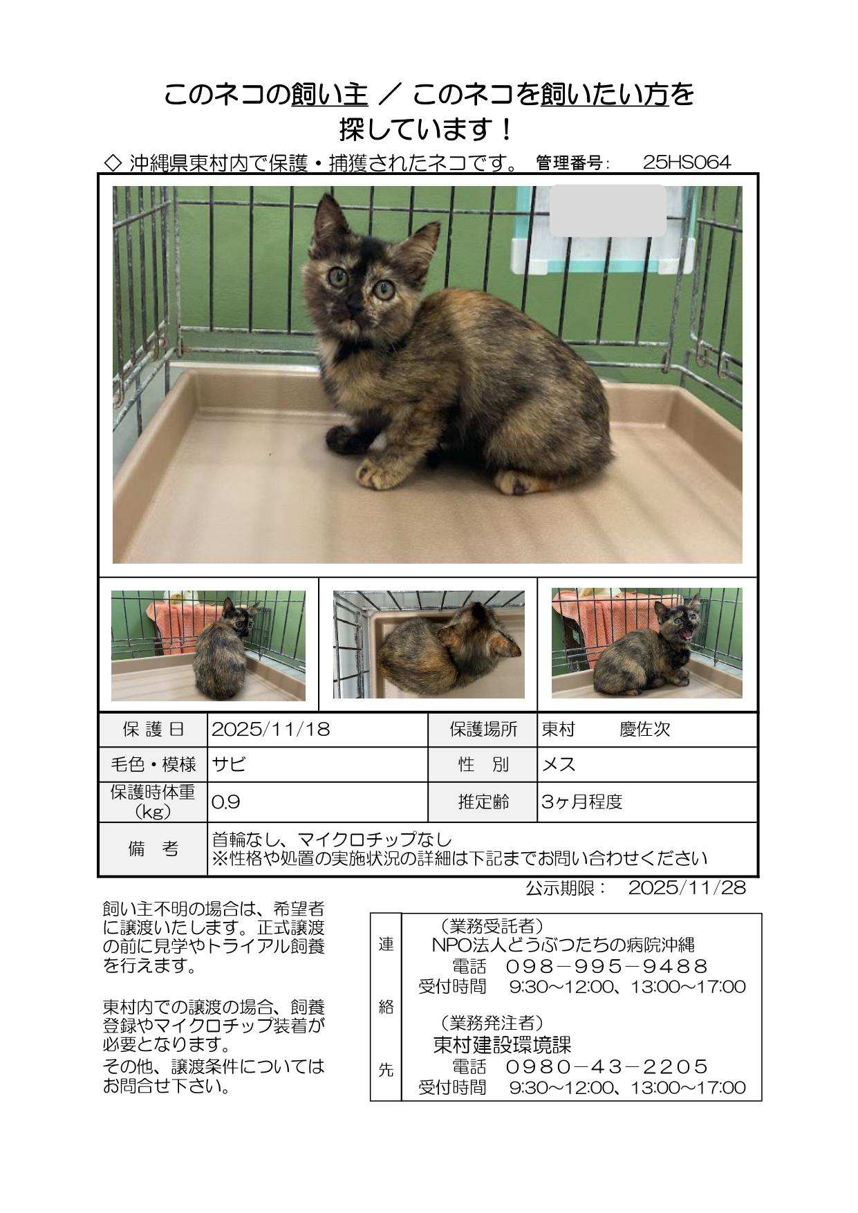 保護されたネコは、村条例で定めた保護期間(約10日間)のあとも、様々な方のお力を借りし、元気に暮らしています。