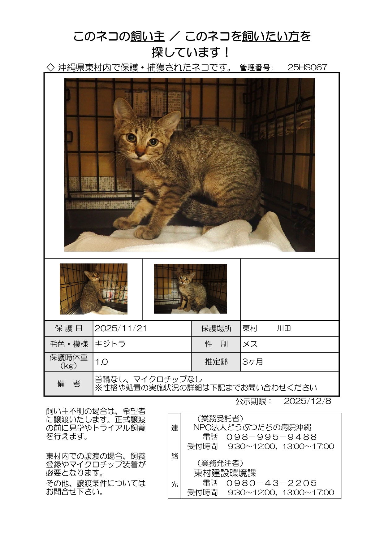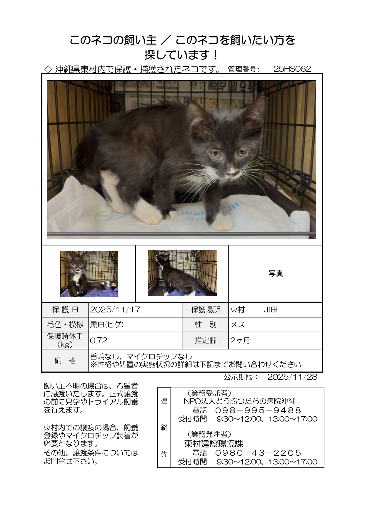 以下に、保護ネコの写真や最新情報が載っていなくても、里親や飼い主を捜していないというわけではありません。保護先で里親を探している場合がありますので、里親のご希望や飼い猫の質問などがあれば、建設環境課までお問い合わせお願いします。