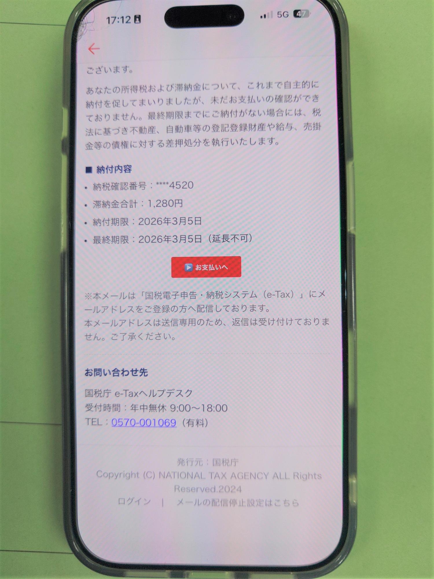 税務署から税金の滞納を理由に、財産の差押えを行う旨のメールは送信しておりません。