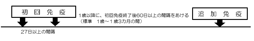 - ただし、初回免疫2回目の接種は1歳になる前までに行う。1歳を超えた場合は初回免疫3回目は行わない。(追加免疫は可能)