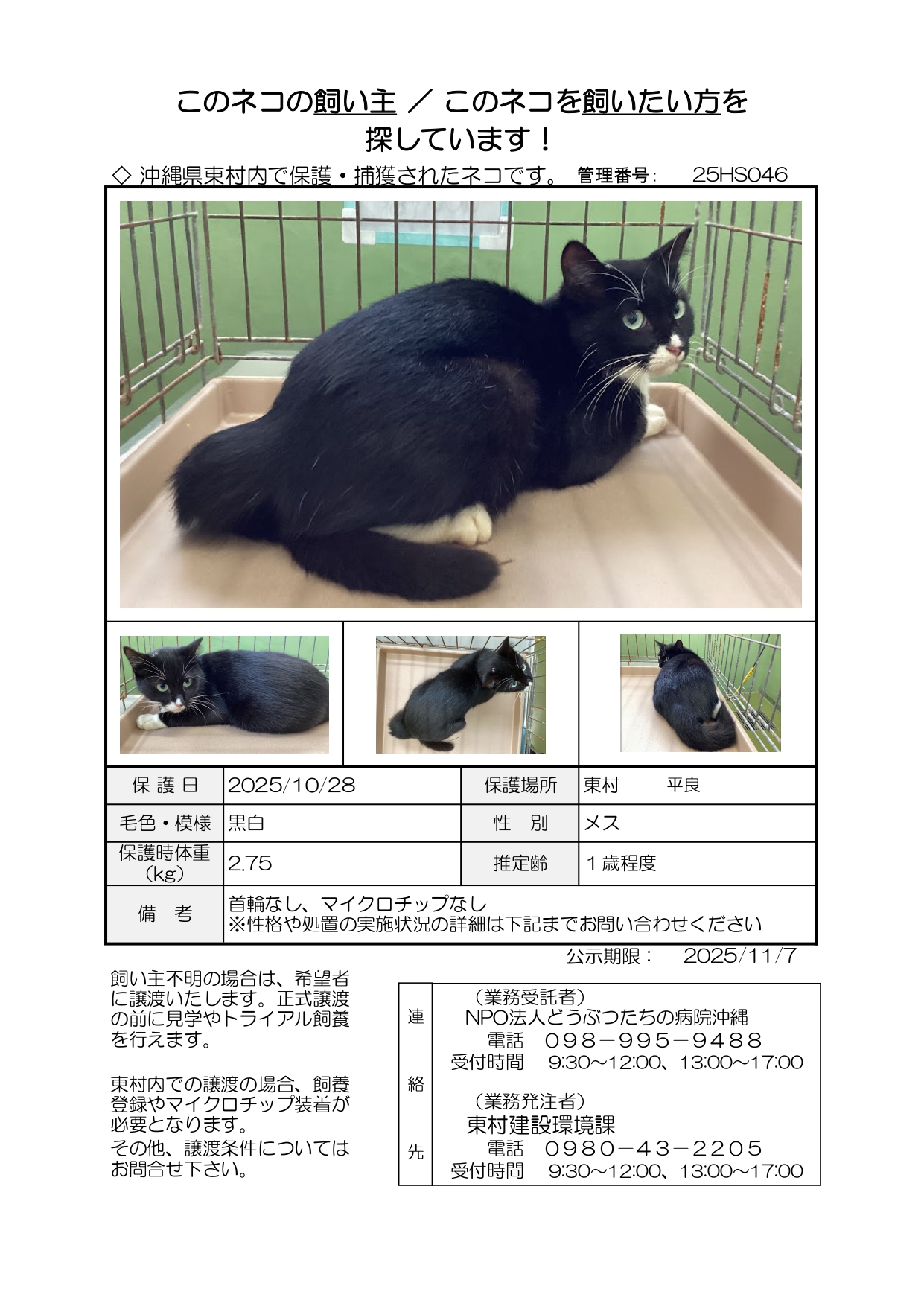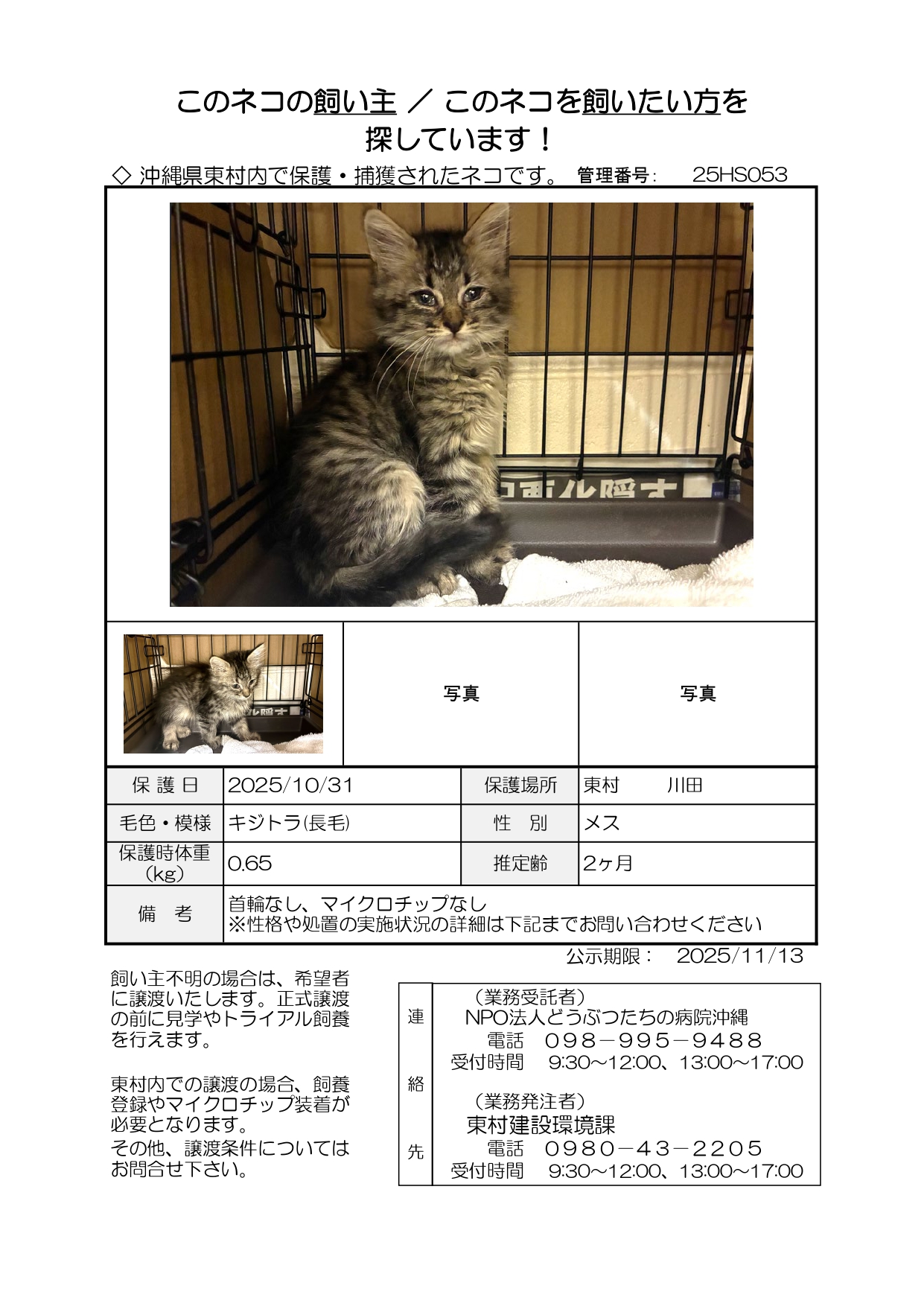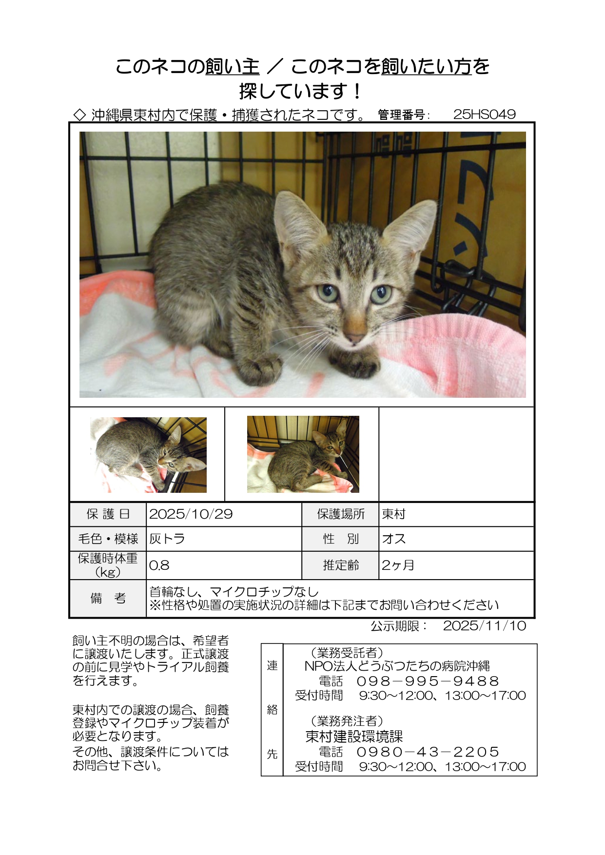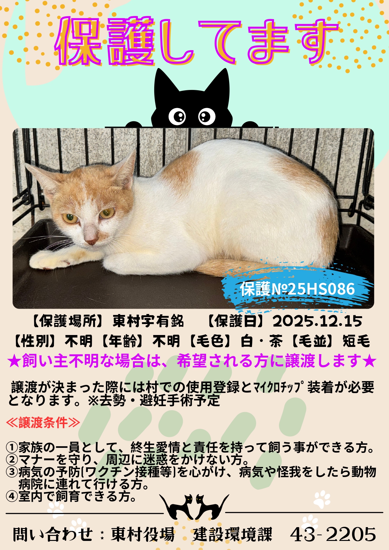 保護されたネコは、村条例で定めた保護期間(約10日間)のあとも、様々な方のお力を借りし、元気に暮らしています。