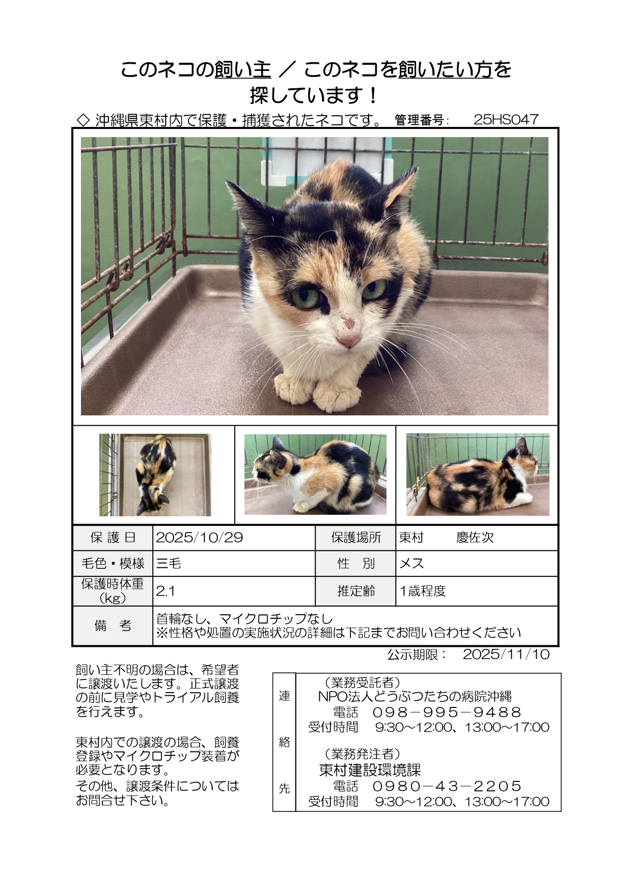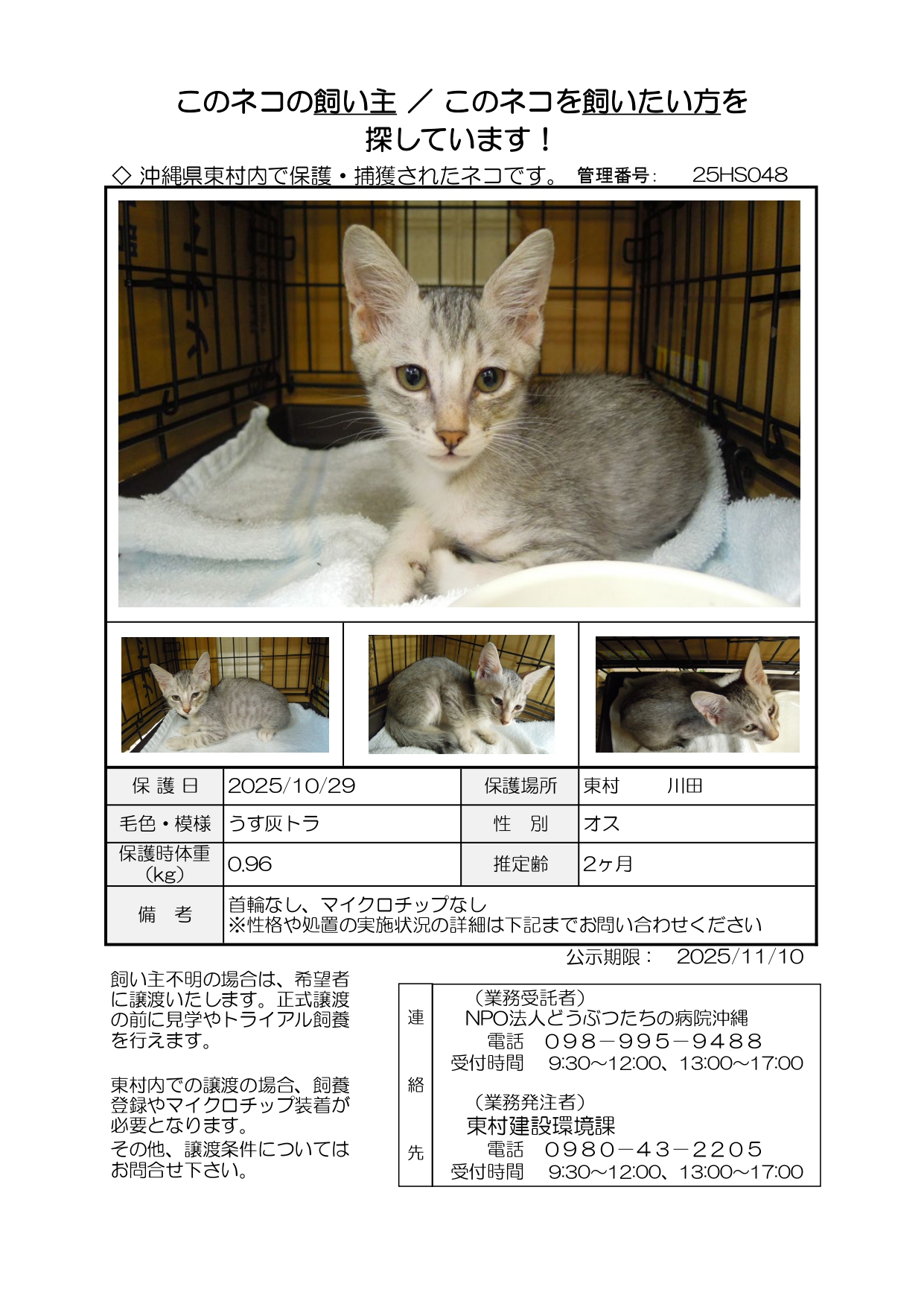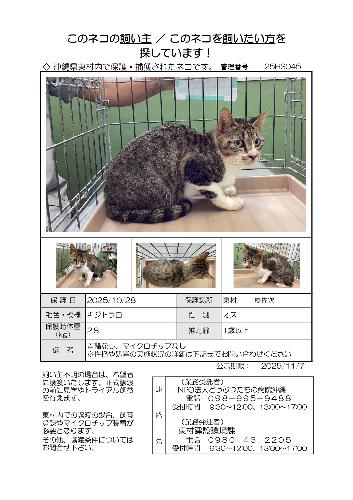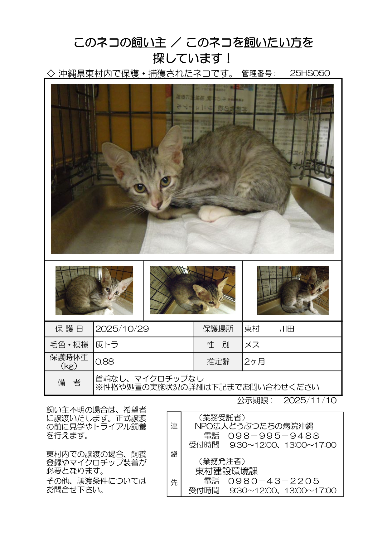 保護されたネコは、村条例で定めた保護期間(約10日間)のあとも、様々な方のお力を借りし、元気に暮らしています。