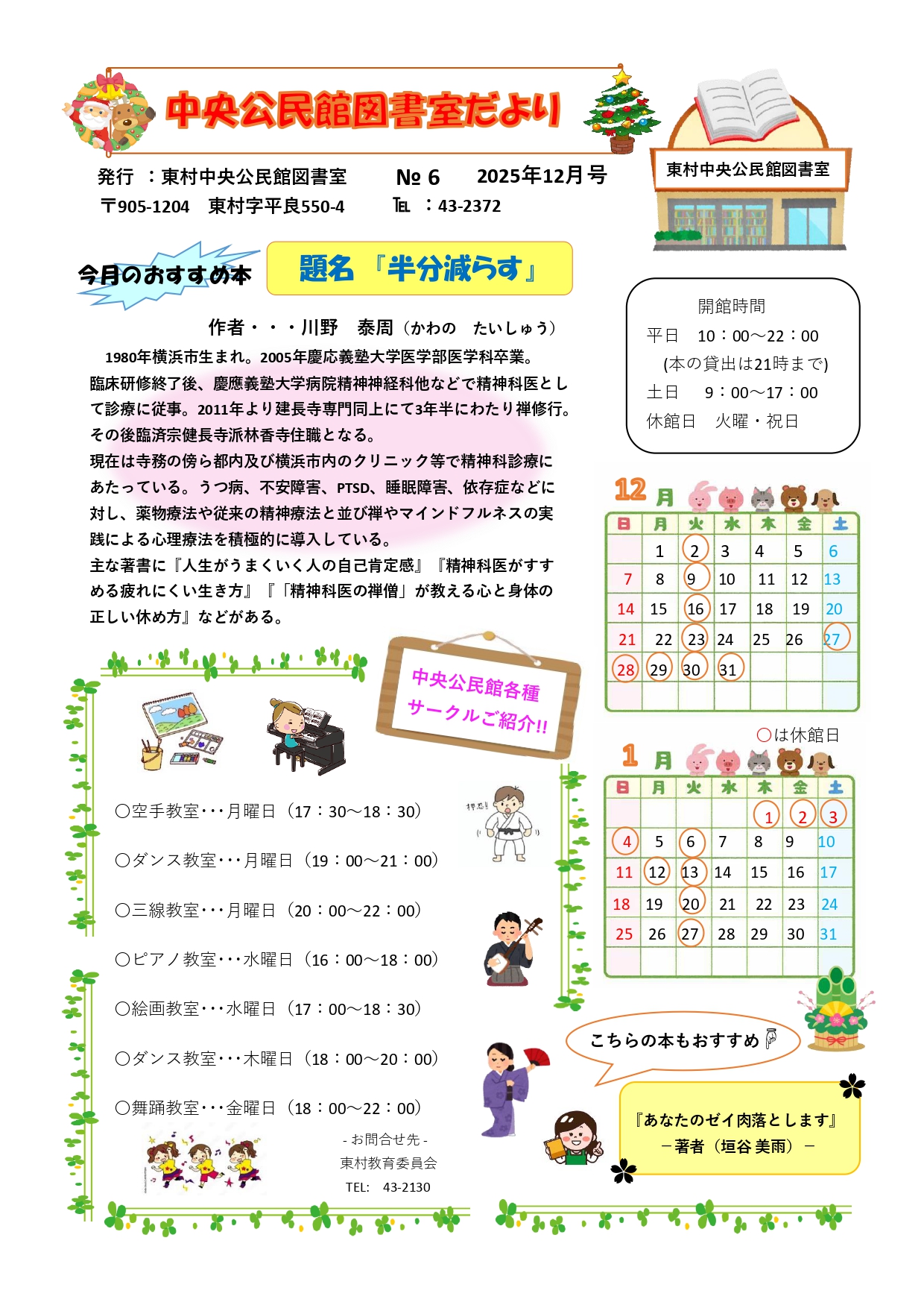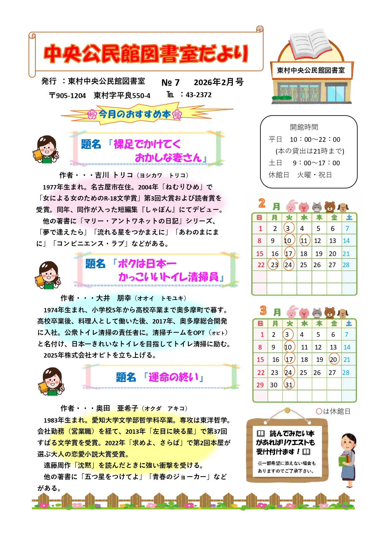 ◇初めて本を借りる方は、中央公民館図書室で作成が必要となります。